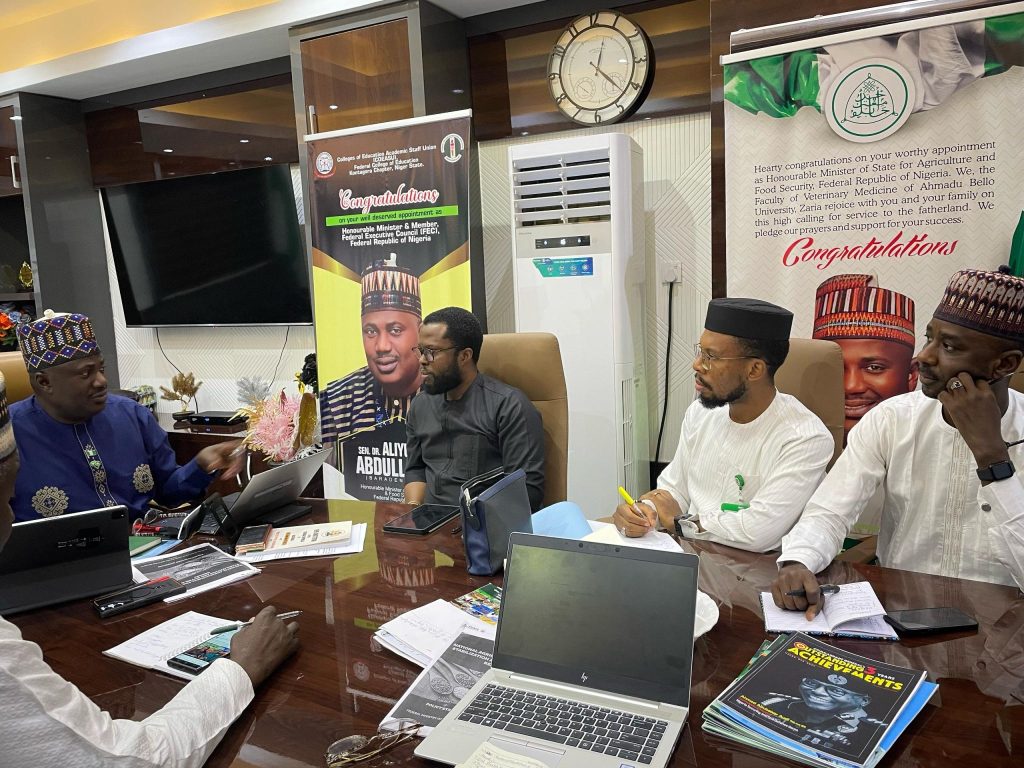 The AgPE-PMO team recently paid a courtesy visit to Dr. Aliyu Sabi Abdullahi, CON, Honourable Minister of State for Agriculture and Food Security, at his office in Abuja.